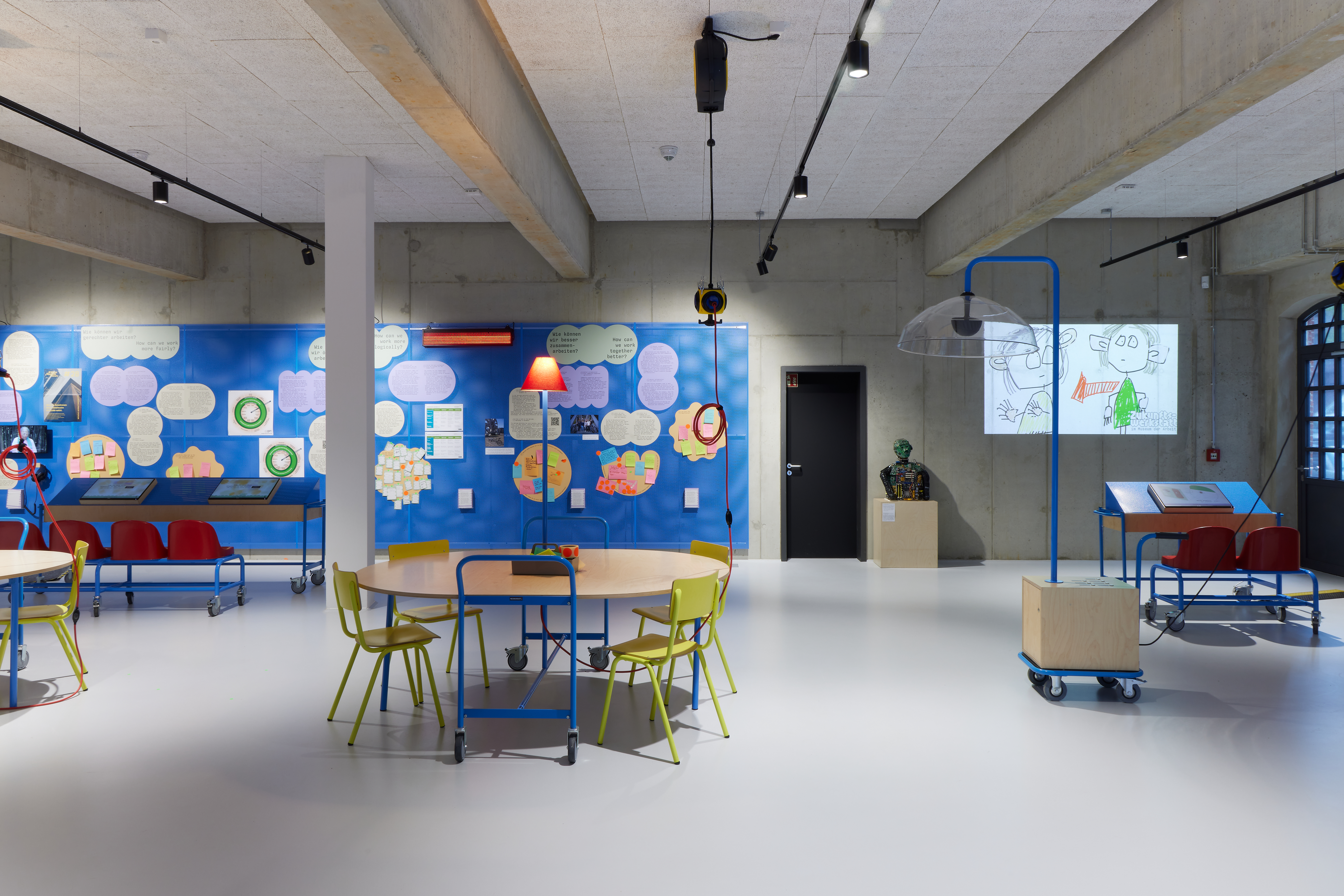 The design by studio lose, which was selected in a competition and has now been realized, is a workshop for working together on the future. Various modules are based on classic workshop trolleys and at the same time are tools in their own right, enabling a variety of accessible exhibition, workshop and event formats that can be rearranged again and again.